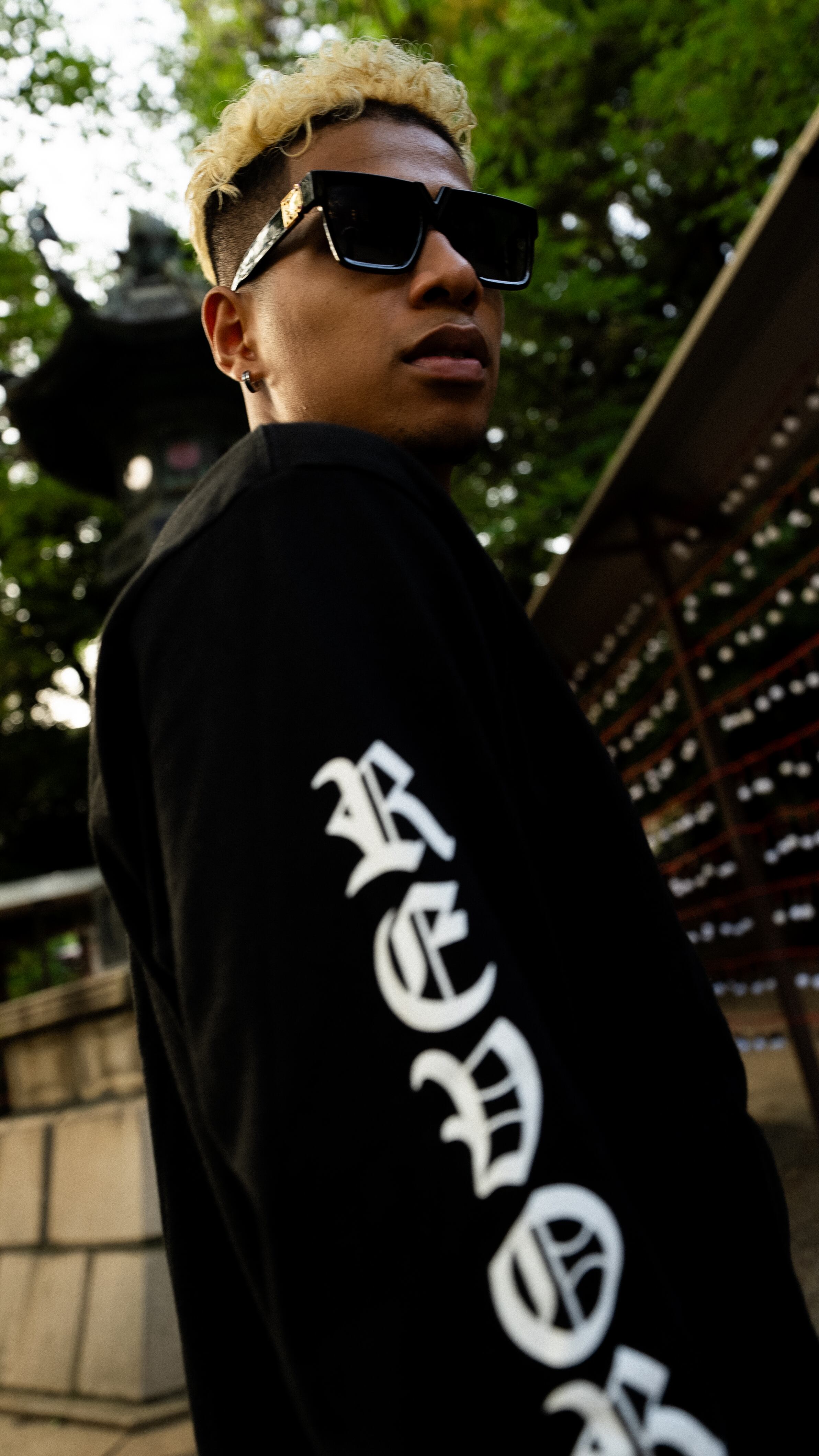 日本時の方にオススメのRevorior long T-shirtです。洗練されたデザインと快適な着心地が特徴で、長めの丈と腕にロゴが入っています。首の部分には梅鉢家紋がアクセントになっており、おしゃれさも兼ね備えています。さまざまなシーンで活躍すること間違いなしです。